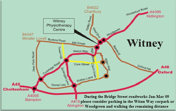 Witney Physiotherapy Centre is conveniently located near Witney town centre. There is public and private parking on site. If you have any questions related to our location, please call us at 01993 201485, and we will be glad to assist you.